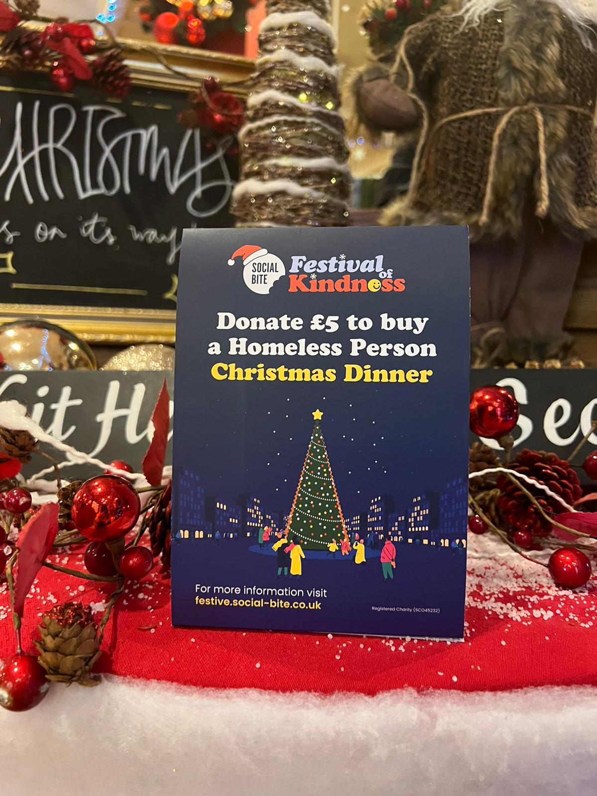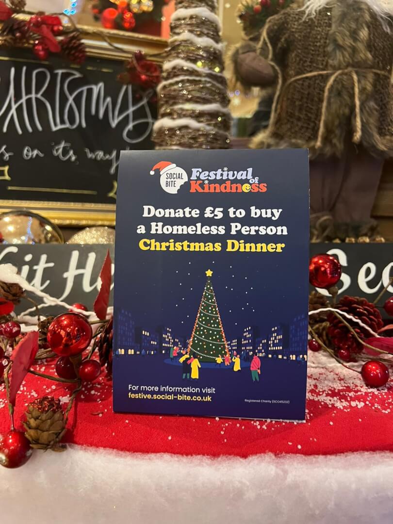 Within our pubs and restaurants, we are further supporting the pledge by adding Festival of Kindness point of sales. By offering our customers the opportunity to tick a box when paying, they can help provide essential items and meals to homeless people this Christmas.